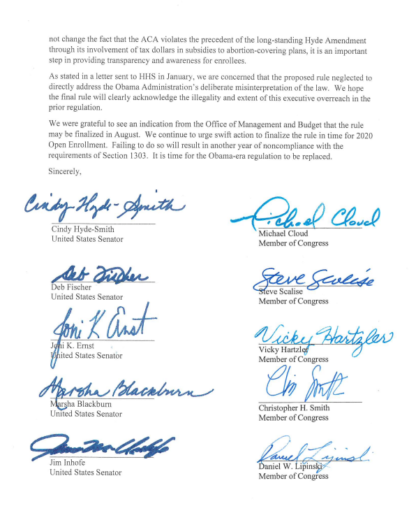 I was pleased to support the Trump Administration rule that addresses hidden surcharges used for abortion procedures in Obamacare health plans. This rule was finalized today and is another big win for @realDonaldTrump and pro-life supporters everywhere.pic.twitter.com/qZE8OrBJb2