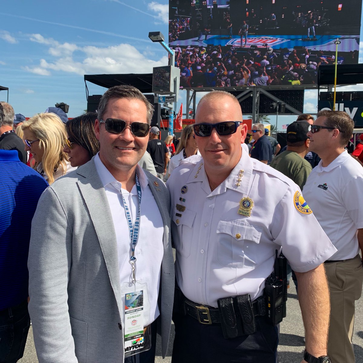 Chief Craig Capri, Daytona Beach Police, Rep. Michael Waltz en Daytona International Speedway