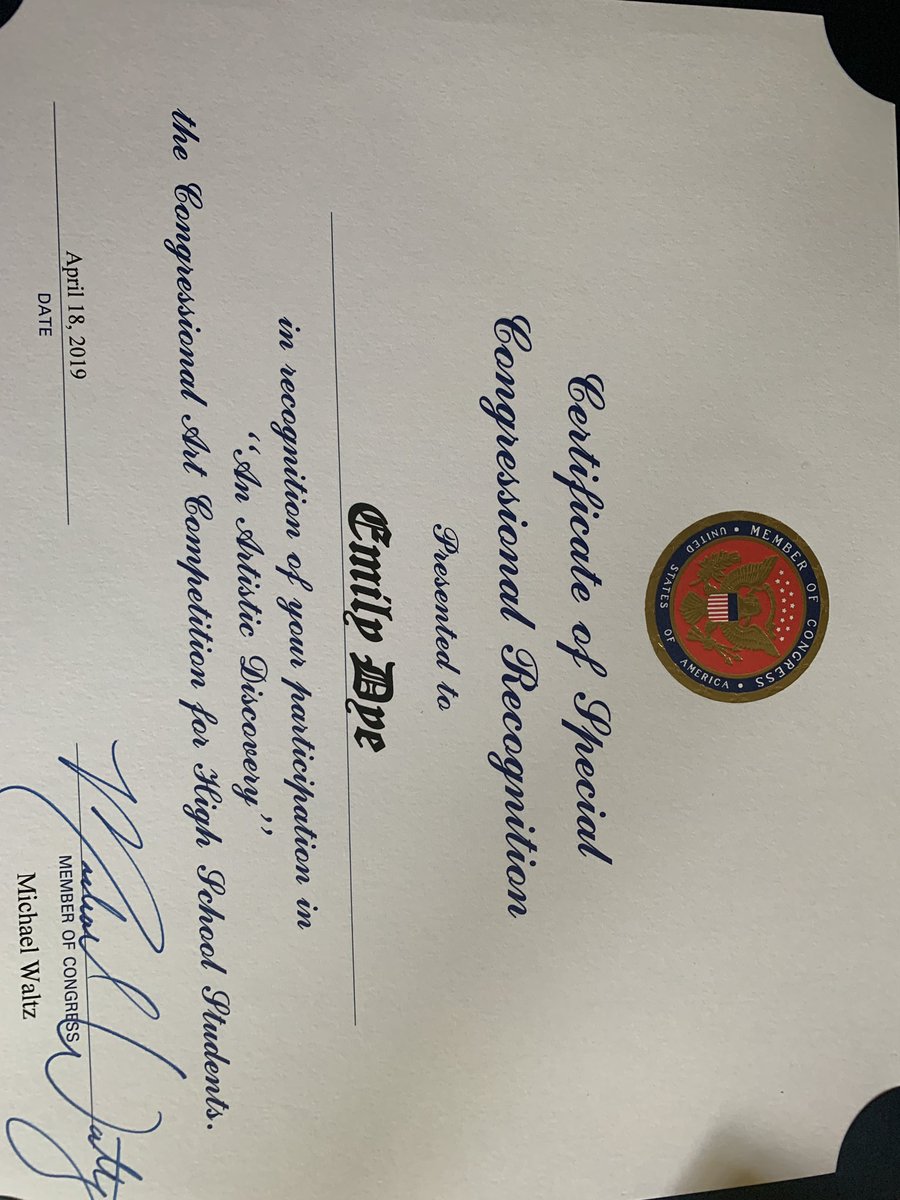 Congratulations to my daughter & @delandbulldogs Emily Dye entry into the Congressional Art Competition for High School students. She put in a lot of detail and work into this piece. What an honor! #ProudDad @volusiaschools @RepMichaelWaltz pic.twitter.com/Jkw9uOPjmV