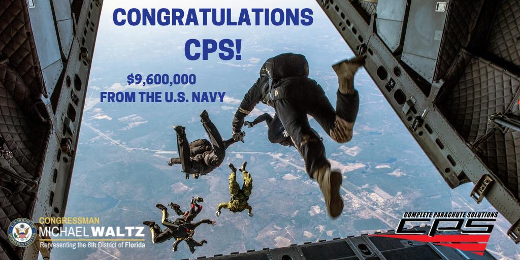 Amazing news! DeLand-based @CPS_Parachutes was just awarded a $9.6 million dollar contract from the @USNavy! CPS makes some of the most advanced parachute rigs used by our special forces all around the world. Great work! 💪 ✈️ 🇺🇸pic.twitter.com/JhfTMEmGm8