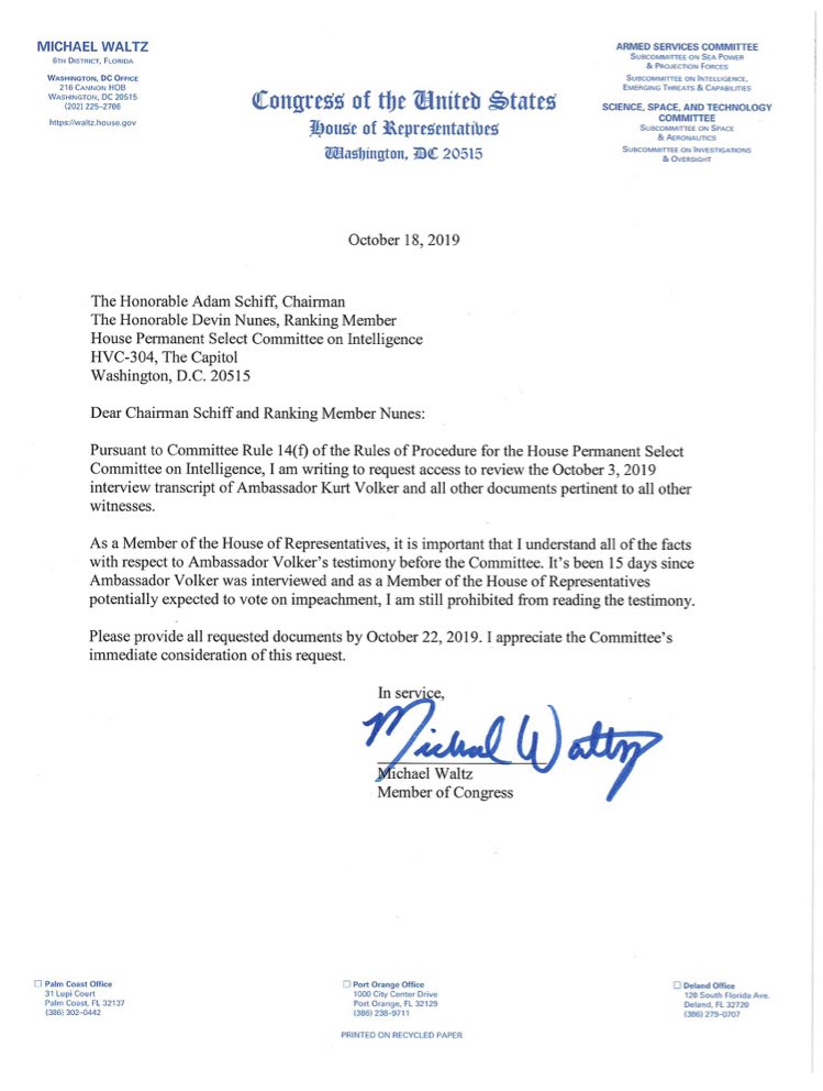 @RepAdamSchiff and@RepDevinNunes requesting access to all witness documents in the impeachment inquiry by 10/22. If we’re expected to vote on impeachment, this process should be transparent — and we should be able to see these transcripts.pic.twitter.com/MHfAcZtovW