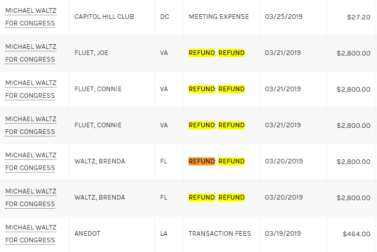 Congressman Waltz, we know you're bought and paid for by your corporate overlords. We know you're a shill for Lyin' Donald Trump. We know you play dirty having your mother Brenda contribute $5,600 to your campaign and then refund it after the election to pump up fundraising #'s.pic.twitter.com/ILRlAEjnJm