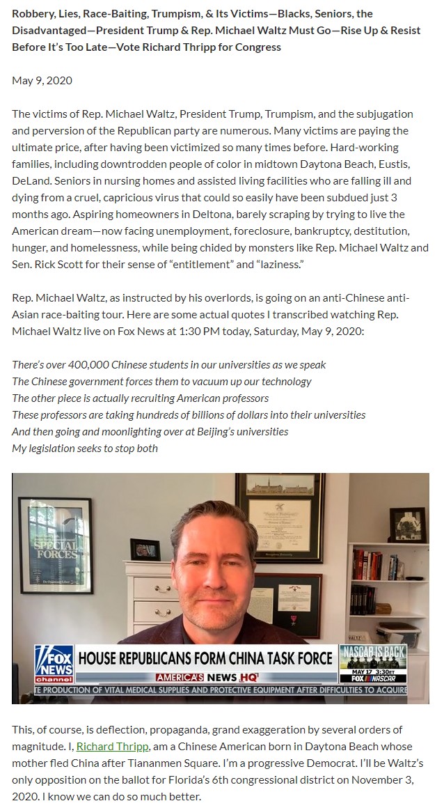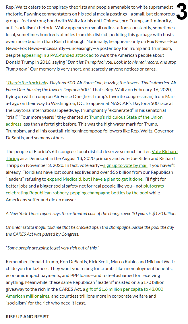 WALTZ MUST GO. Robbery, Lies, Race-Baiting, Trumpism, & Its Victims—Blacks, Seniors, the Disadvantaged—President Trump & Rep. Michael Waltz Must Go—Rise Up & Resist Before It's Too Late—Vote Richard Thripp for Congress #ThrippForCongress #FL06 #BlueWave https://www.linkedin.com/pulse/robbery-lies-race-baiting-trumpism-its-victimsblacks-seniors-thripp/ …pic.twitter.com/9ROxRWbuB0