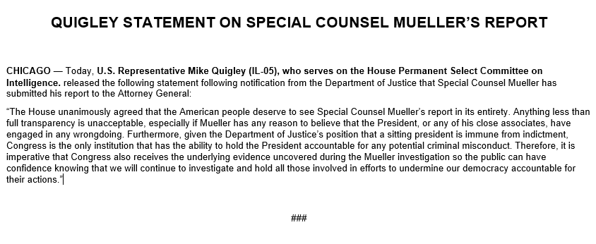 Dear Rep. Quigley, you have repeatedly insinuated that you knew Trump & his campaign perpetrated serious misconduct. If the U.S. House does not find the misconduct sufficient to impeach Trump, will you apologize for misleading the public in numerous TV interviews?