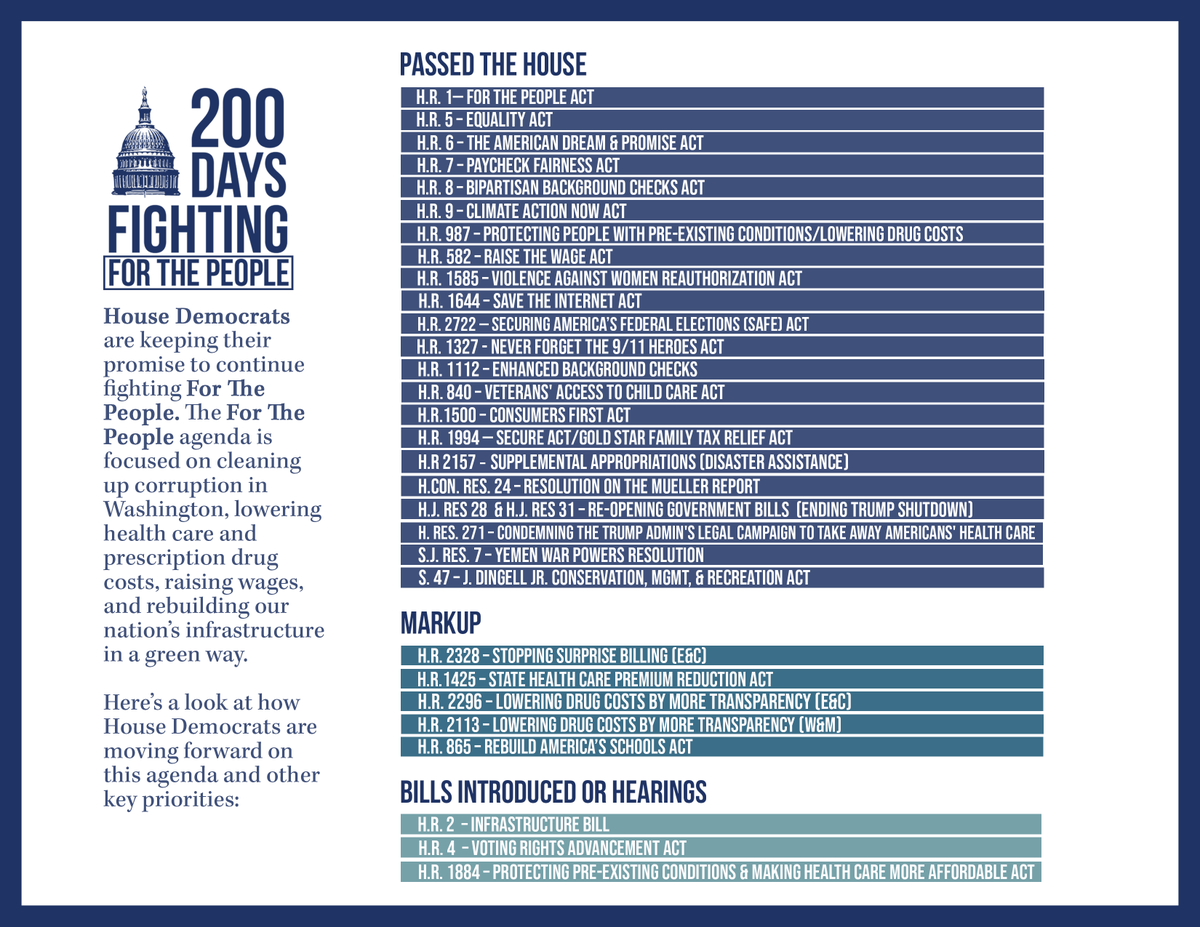 This week marks #200DaysOfProgress under our new Democratic Majority in the House! Plenty of work left to do, but we are making steady progress #ForThePeople!pic.twitter.com/uQGQUZ42k4