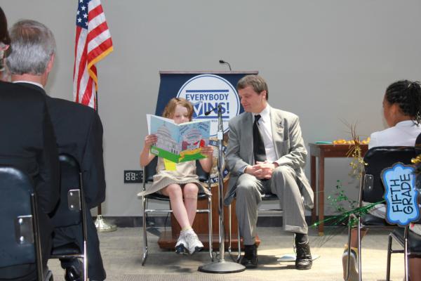 Reading w/ @everybodywins buddy Taylor at today’s end of year celebration. He's been mentoring her since August.pic.twitter.com/wzvJuv6S