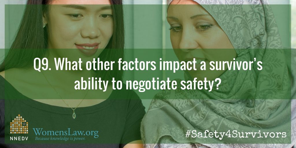 Q9. What other factors impact a survivor's ability to negotiate safety? #Safety4Survivors #DVAM2017pic.twitter.com/Cterd4pmht