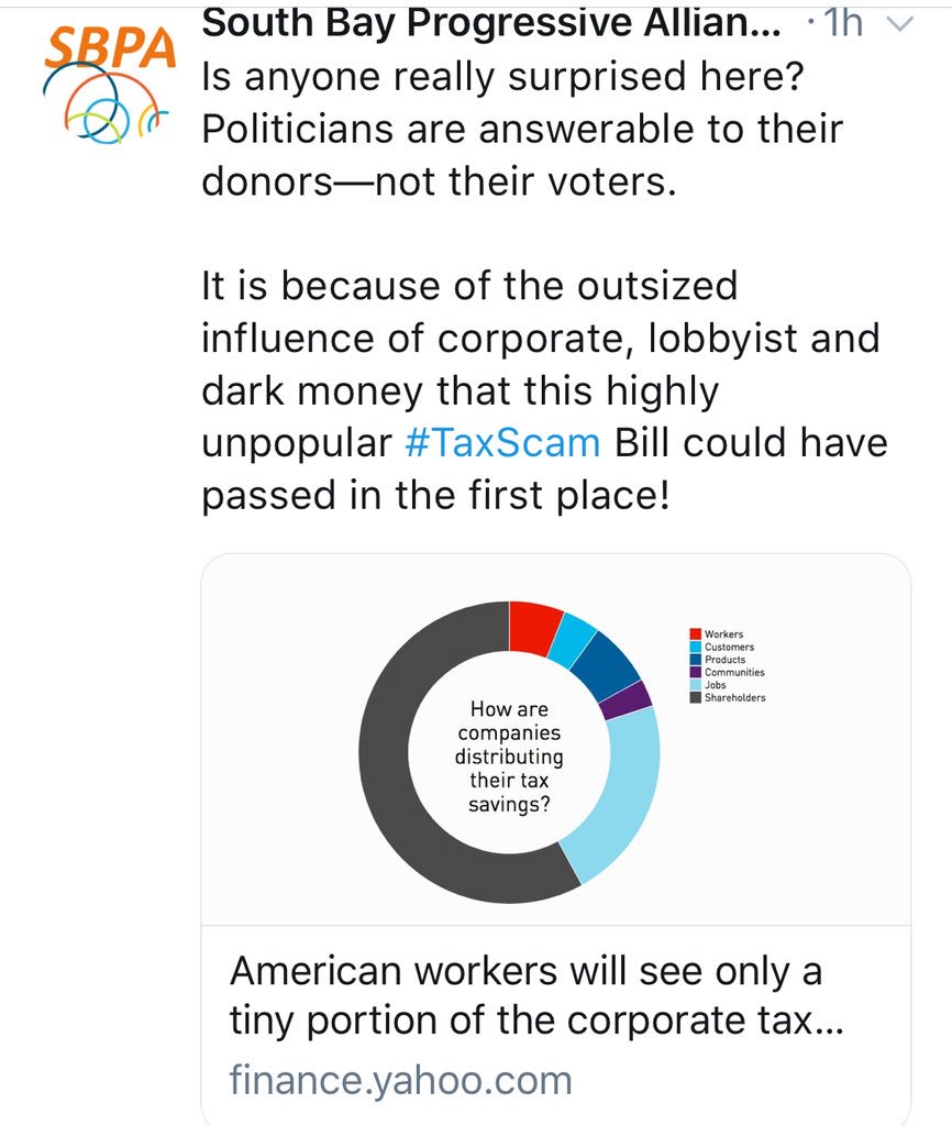 Let’s see... Trump starts trade war by imposing tariffs on steel & aluminum. No action from Congress Another shooting at school today. No action from Congress. Billions saved by rich & big business, crumbs for average folks.All out sales job by Congress