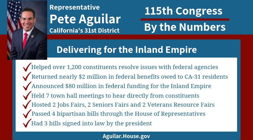 Throughout the 115th Congress, I've been committed to improving the lives of Inland Empire families. I've worked hard to deliver results for our region, and I look forward to continuing that work. https://aguilar.house.gov/media-center/press-releases/aguilar-issues-115th-congress-report-constituents …pic.twitter.com/XS07rAUGoP