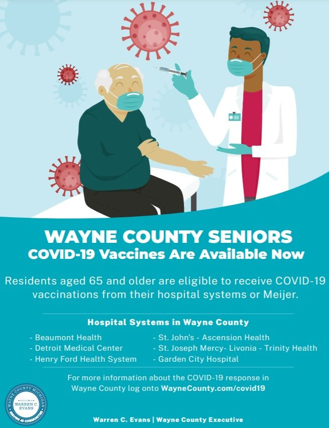 #COVID19 vaccines, these hospital systems will administer them to#WayneCounty residents aged 65+. Meijer locations will also have limited vaccines, you can pre-register on their site. Please check with your provider for availability.#MaskUpStaySafepic.twitter.com/RQFNiv7uSS