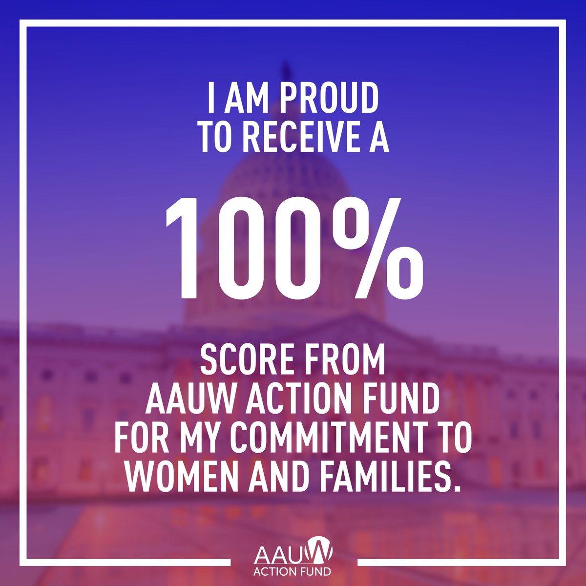 Feeling proud to receive a 100% rating in the @AAUWActionFund Congressional Voting Record for the 115th Congress. We will keep fighting to achieve full equity for all women in America. http://bit.ly/CVR115 pic.twitter.com/Kd9tV39Hjj