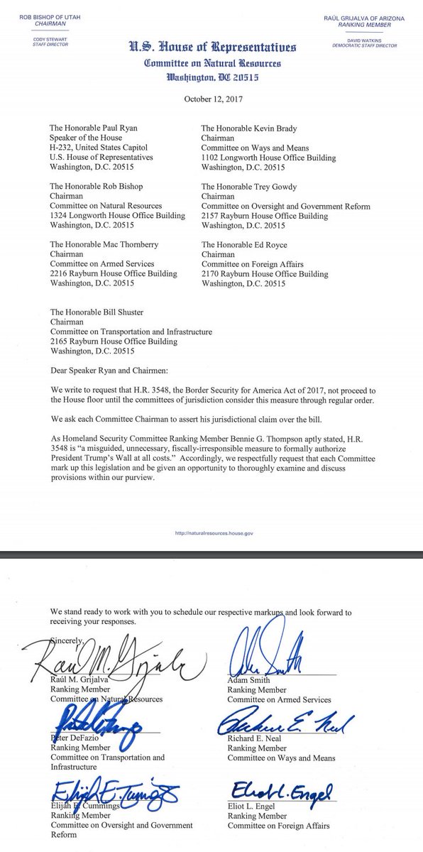 Top Committee Democrats→ GOP Leaders: Committees want to debate the GOP-backed #BorderWall bill before it goes to the House floor for a vote pic.twitter.com/BaJy8nSQlV