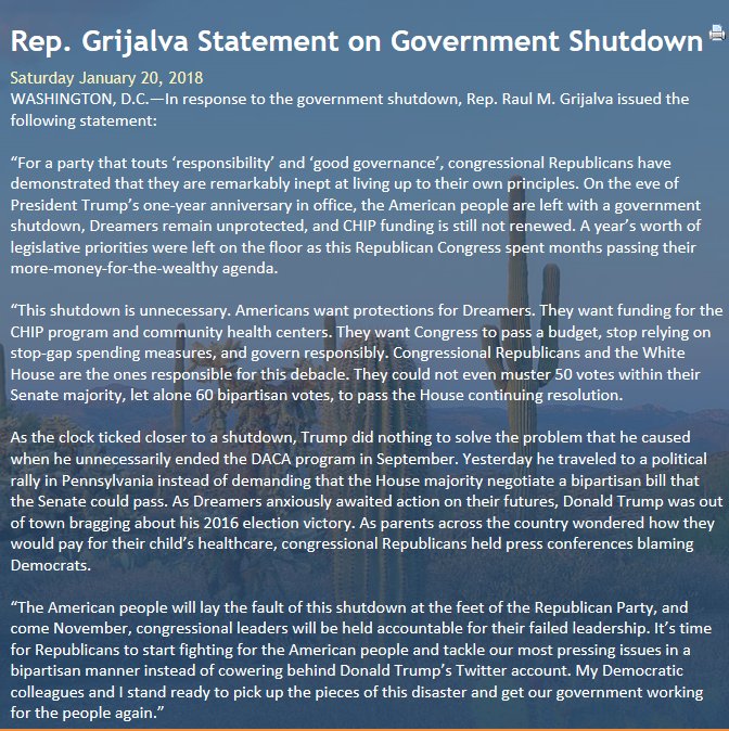 Raul M. Grijalva‏Verified account @RepRaulGrijalva 19 Jan 2018