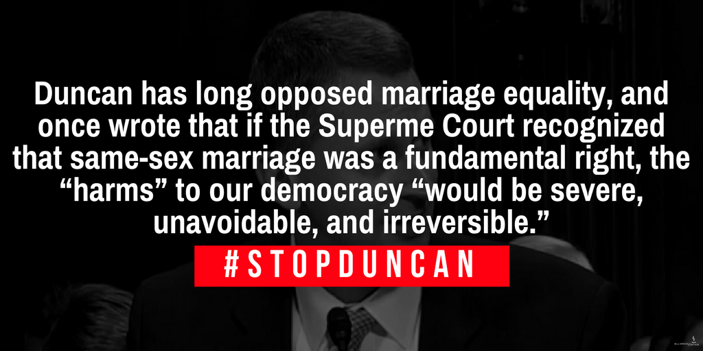 My Senate colleagues must reject the nomination of Stuart Kyle Duncan to the 5th Circuit. If you're not willing to protect the rights of all Americans, you don't deserve confirmation to a lifetime seat on the bench. #CourtsMatterpic.twitter.com/ZNdCQ2420D