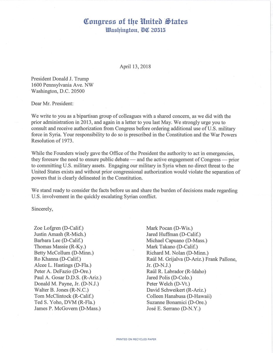 Sec Mattis cites article II as authorization because the civil war could escalate threatening US security interests. Under this broad interpretation POTUS could go to war anywhere anytime. This argument also discounts/circumvents Article I powers.