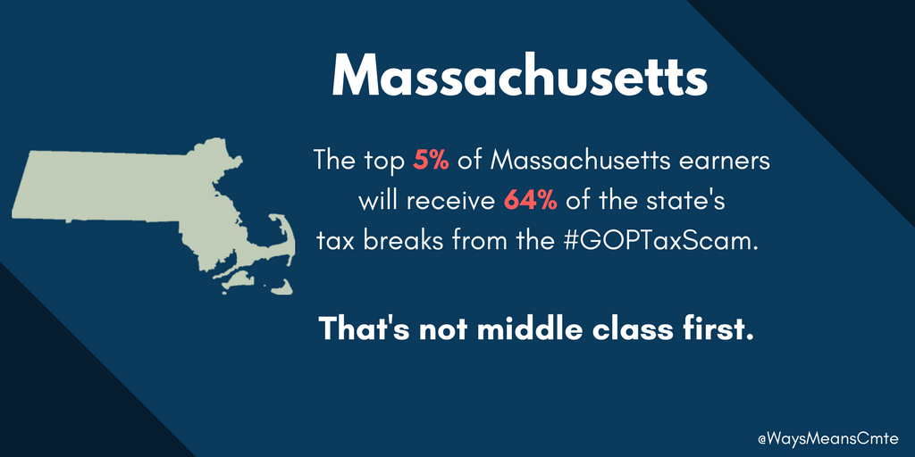 Because of the #GOPTaxScam, the middle class in Massachusetts gets left behind. Meanwhile, the top 5% of earners in our state receive 64% of tax breaks.pic.twitter.com/A2uXy5WYCx