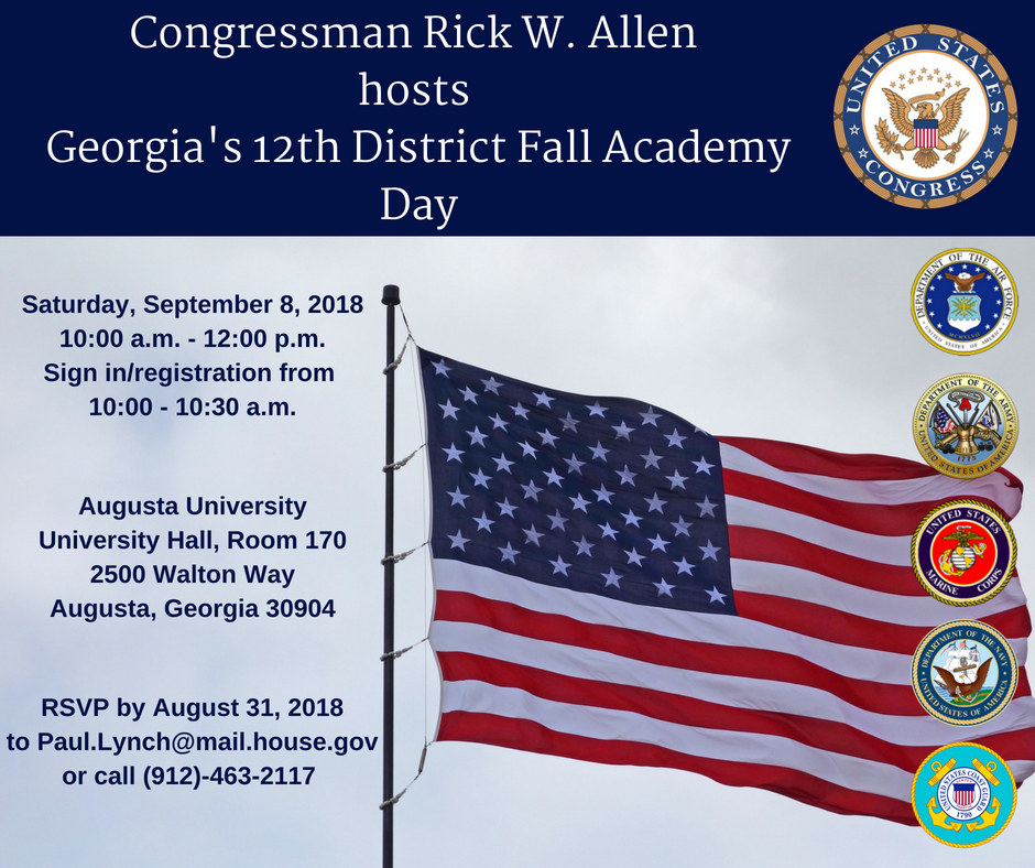 #GA12 REMINDER: Next weekend, l will be hosting a Fall Academy Day for individuals interested in attending one of our five service academies. Those who wish to learn more about the application/nomination process, please RSVP as soon as possible! More → https://bit.ly/2OE52jj pic.twitter.com/vMCRoKkI4H