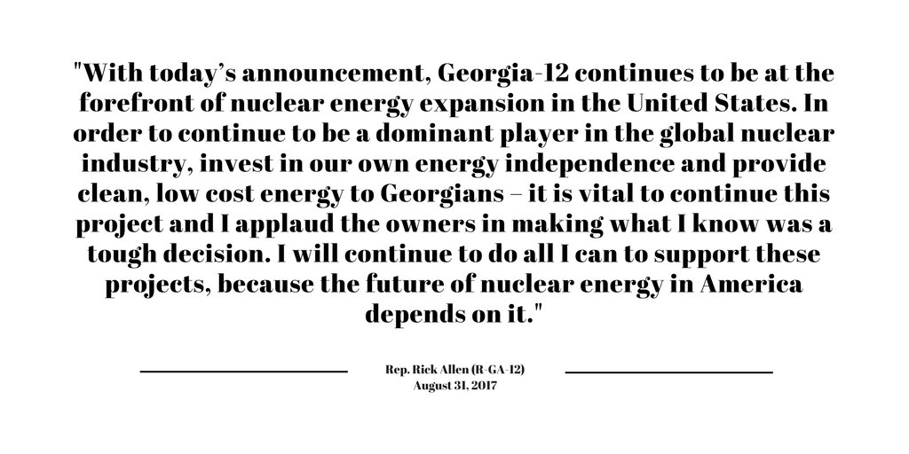 I am thankful for @GeorgiaPower Oglethorpe Power, @MEAGPower and @DaltonUtilities continued investment in Plant Vogtle. #GA12pic.twitter.com/h5YkzJNllM