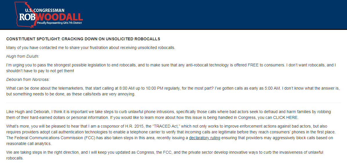 In this week's "Washington Watch" e-newsletter, I discuss what I am doing to crack down on unsolicited robocalls. Read more: https://woodall.house.gov/media-center/e-newsletter-archive/washington-watch-62419#spotlight …pic.twitter.com/pxImWHY9lh