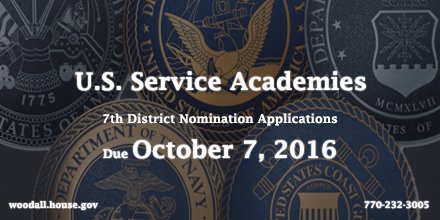 Don’t miss it! Applications for Service Academy nominations are due this Friday by 5PM in my Lawrenceville office! #service #GA07 #leaderspic.twitter.com/IDiu0a7aVo