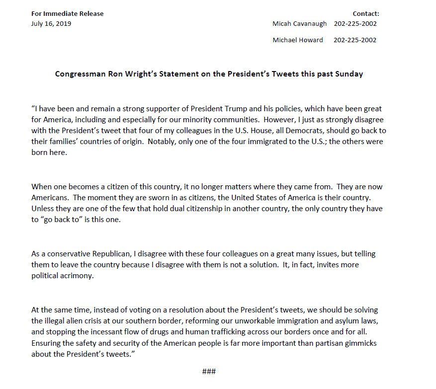 Thank you for your leadership, Representative Wright!