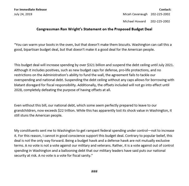 You can warm your boots in the oven, but that doesn’t make them biscuits. Washington can call this a good, bipartisan budget deal, but that doesn’t make it a good deal for the American people. Read the rest of my statement below:pic.twitter.com/jq7XZaxCth