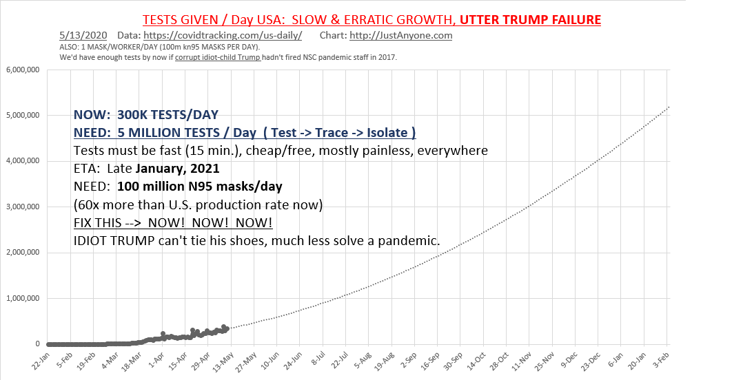 What we really need are masks. Kn95 masks, about 100 million a day, made in USA. Now? Maybe appropriate some money to that? Now, please?