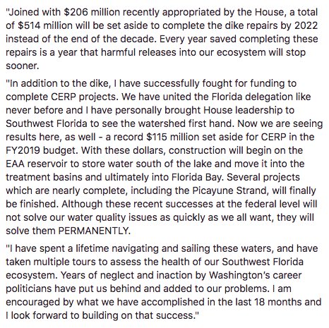 Congressman Francis Rooney statement on federal water quality efforts:pic.twitter.com/FQrlM0Nq6T