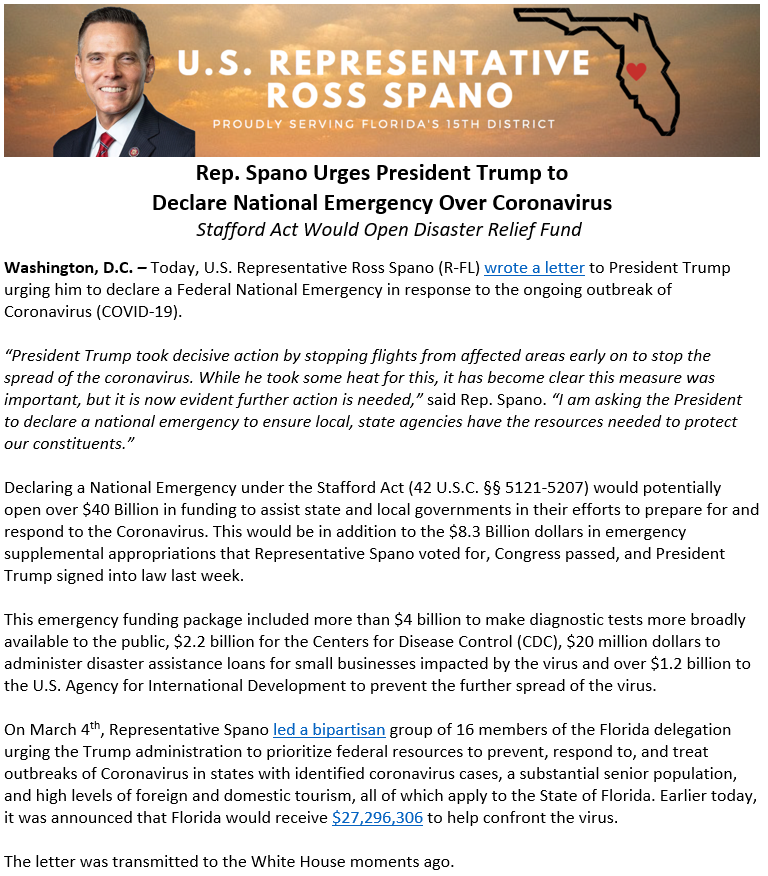 Congressman Ross Spano‏Verified account @RepRossSpano Mar 11