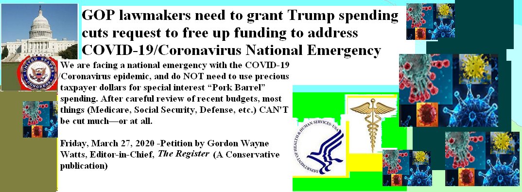 GOP lawmakers need to grant Trump spending cuts request to free up funding, address COVID-19/Coronavirus National Emergency-WEIGH IN & comment http://facebook.com/notes/gordon-wayne-watts/10156829306465248 … We are facing a national emergency with the COVID-19/Coronavirus epidemic & need to STOP wasting precious Tax$$'spic.twitter.com/UFqwiFTGpY
