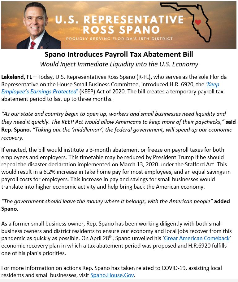Today, I introduced the 'Keep Employee's Earnings Protected Act of 2020' (KEEP ACT), because the government should leave the money where it belongs... with the American people.