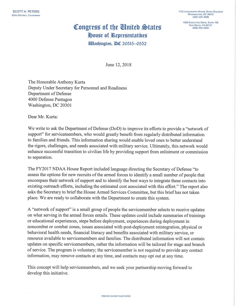 I led a letter to @DeptofDefense asking them to improve efforts to provide a network of support for servicemembers--loved ones selected to receive updates on a servicemember so they can better understand the rigors, challenges, and needs associated with military service.pic.twitter.com/tCiEQoqWHi