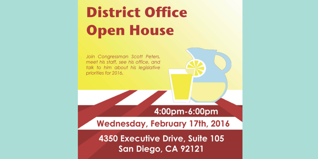 You're invited to meet me and my staff at our San Diego office today from 4-6pm. http://1.usa.gov/1U8mMlO pic.twitter.com/aoxahluecu