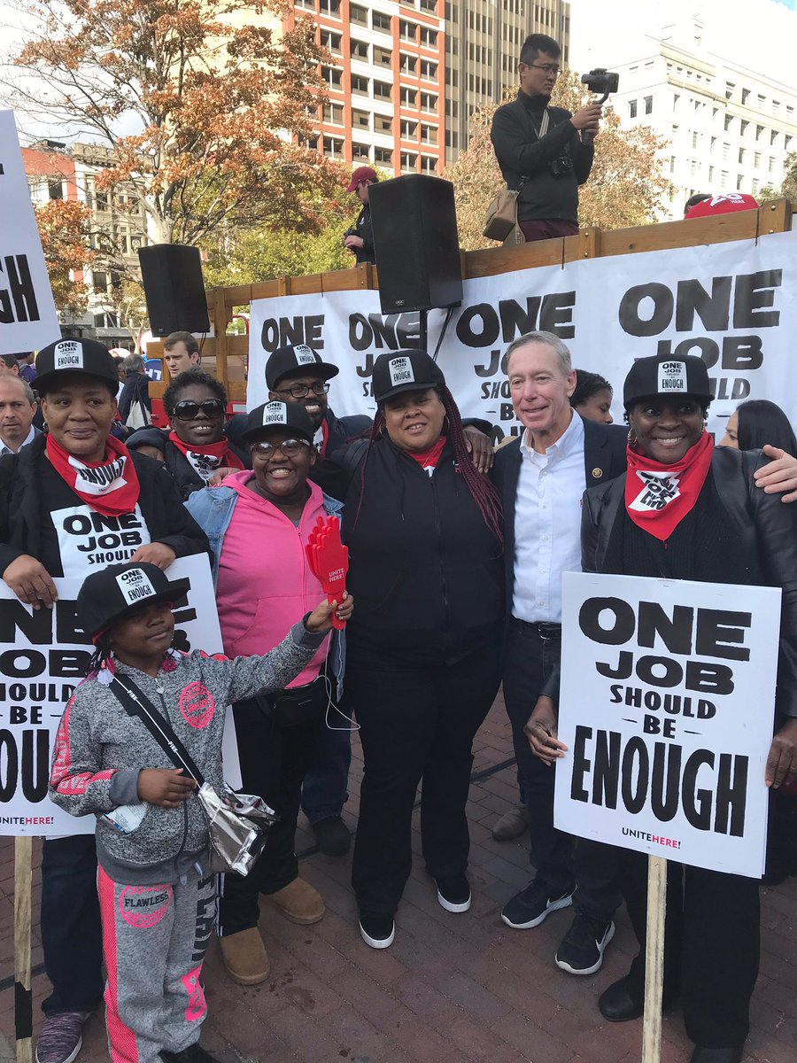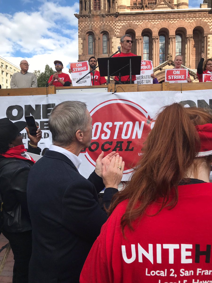 (1/2) Today I joined the members of the hospitality workers union, Unite Here 26, in support of all the hotel workers on strike. The Union is asking for more secure schedules, work hours, and to improve sexual harassment protections, all reasonable requests.pic.twitter.com/RyfRiijV2O