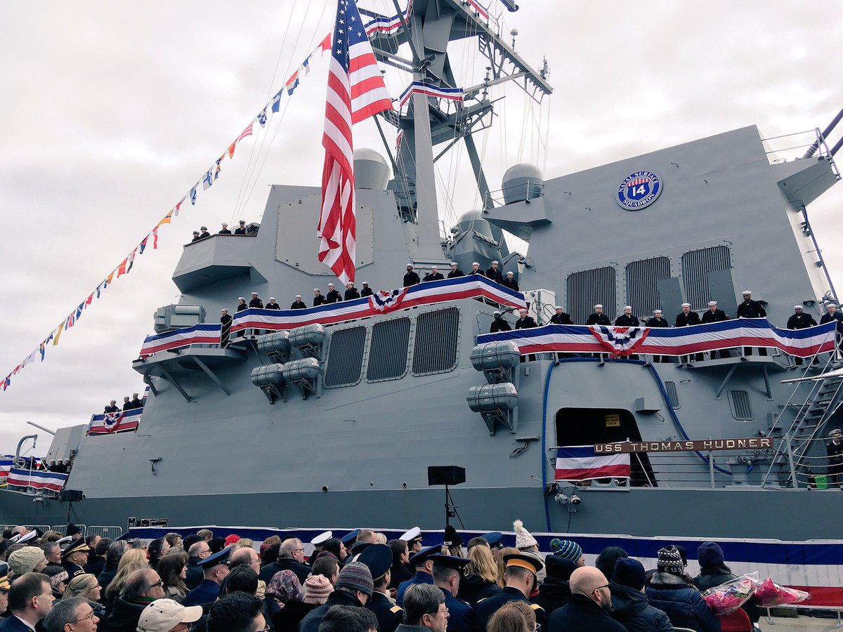 (1/3) Impressive crowd and ceremony at the Commissioning of the USS Thomas Hudner today in South Boston. Medal of Honor Recipient Thomas Hudner and Ens. Jesse Brown, the first African American Naval Aviator, offer a powerful example of bravery and brotherhood to our Nation.pic.twitter.com/3xhLM5HwRP