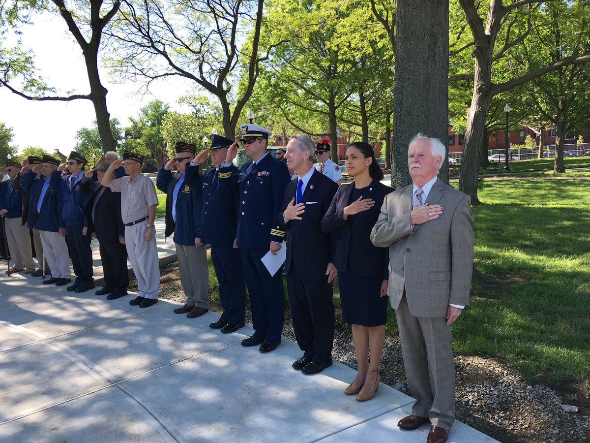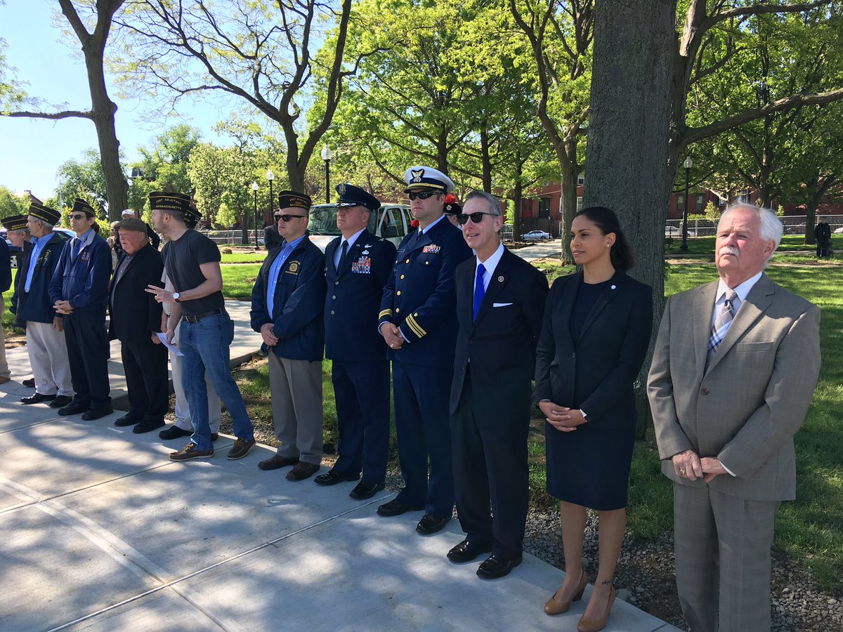 Alongside Commander Flynn & @CityOfBoston #Veterans Commissioner Sterling, we marched to #MedalofHonor Park for the wreath-laying ceremonypic.twitter.com/Kf21iHJKiw