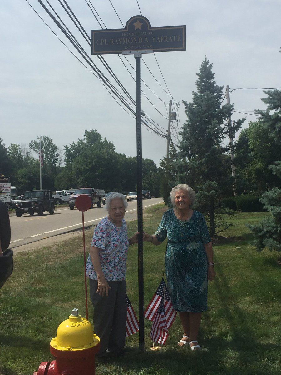 The corner of North Bedford and Grove Street in #EastBridgewater, the site of his homestead, will forever bear Corporal Yafrate's name.pic.twitter.com/hTHdVPcqAy