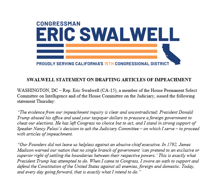 I thank you Eric. You've been a stalwart from the start Rep Swalwell.