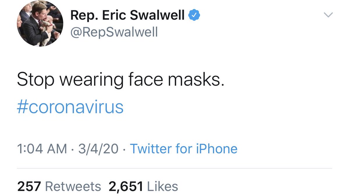 Coronavirus advice from @ericswalwell: https://twitter.com/RepSwalwell/status/1235083668336431104 …pic.twitter.com/IzVOO2DI0j