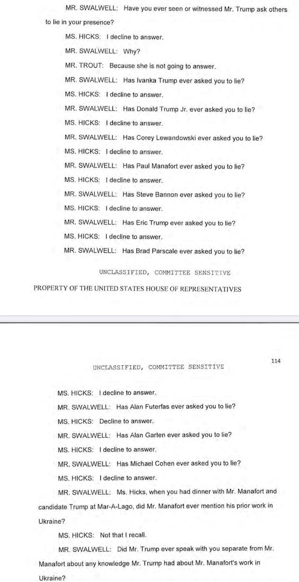 What the hel1 was she there for if she “declined to answer” everything? Ridiculous!