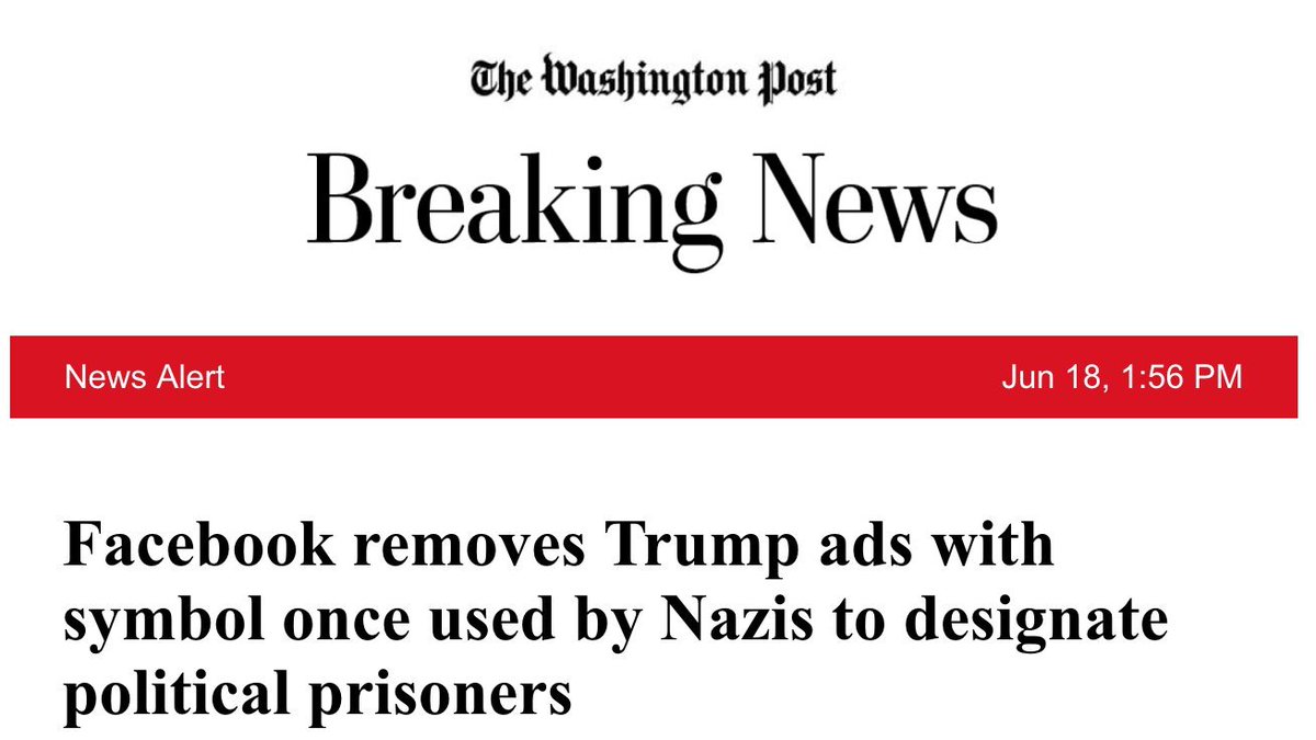 Round one. Done. Facebook takes down Trump ads 'for violating our policy against organized hate'https://www.cnn.com/2020/06/18/tech/facebook-trump-ads-triangle-takedown/index.html …