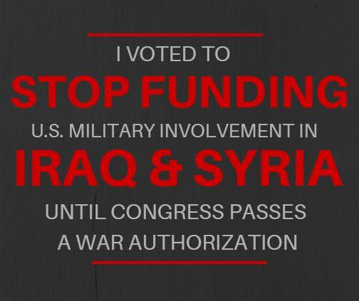 Voted to stop funding mil involvement in Iraq & Syria after Mar 16 unless we pass a war authorization. It’s past timepic.twitter.com/grxNZCam11
