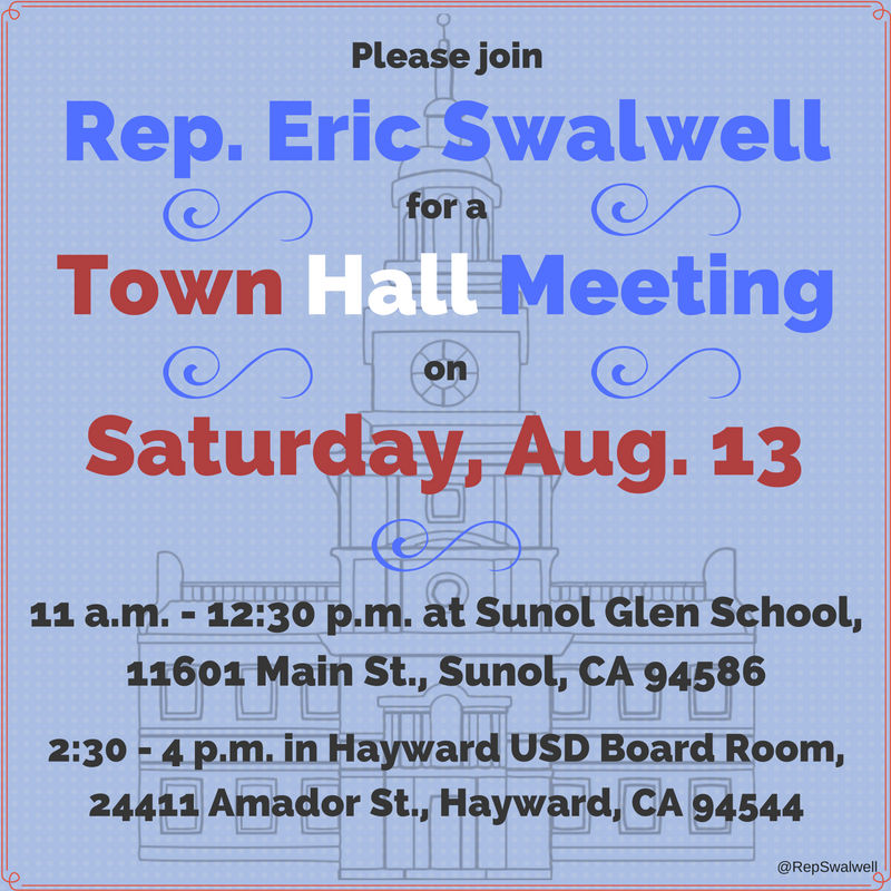 Don’t forget: #CA15 town hall meetings tomorrow in Sunol (11am-12:30pm) & Hayward (2:30-4pm). Hope to see you there!pic.twitter.com/Edalxr6gnG