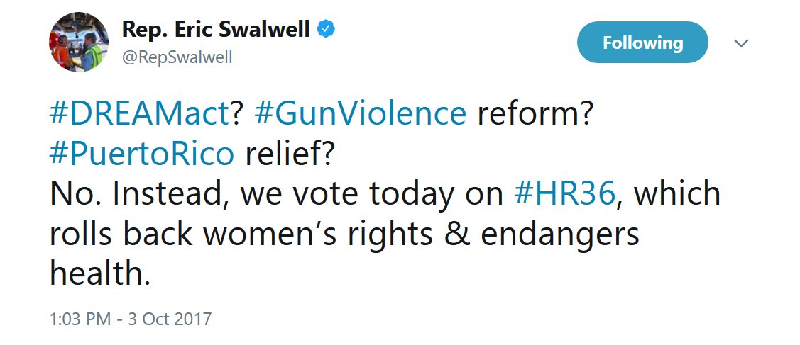 No. Instead, we vote today on #HR36, which rolls back women’s rights & endangers health.