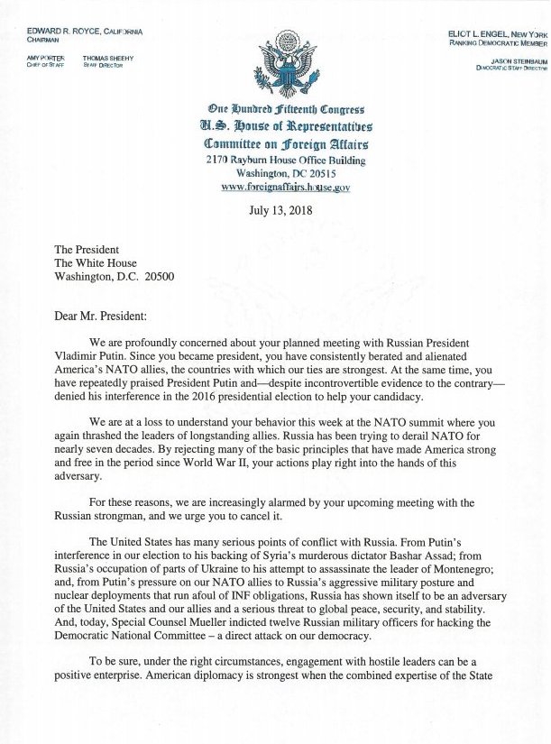 Great...now go the next level, organize a Skype congressional delegation and DEMAND that he not meet Putin! Congress must provide the check/balance on a runaway Dictator In Chief, especially one under multiple investigations for collusion/conspiracy. TIME TO ACT!
