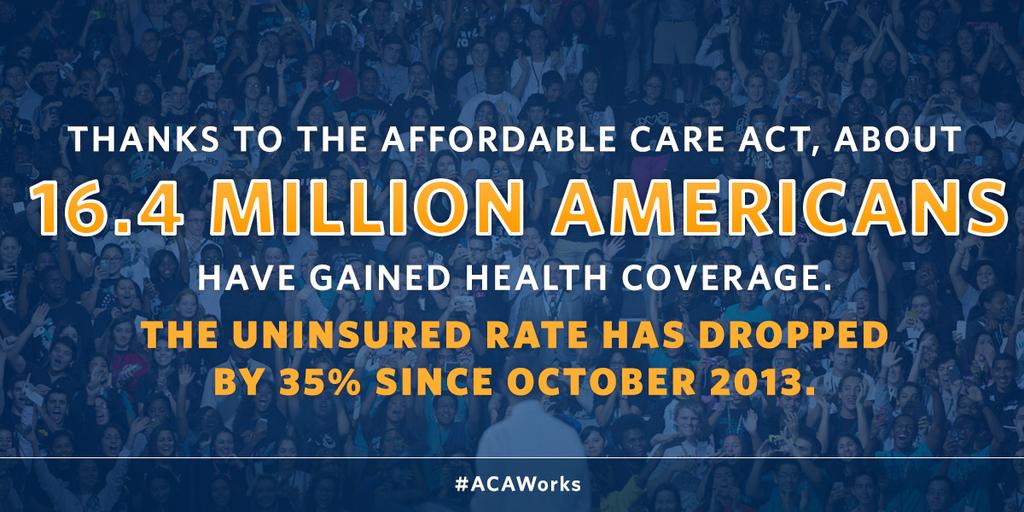 .@WhiteHouse: Thx 2 #ACA 16.4 million more Americans have health coverage