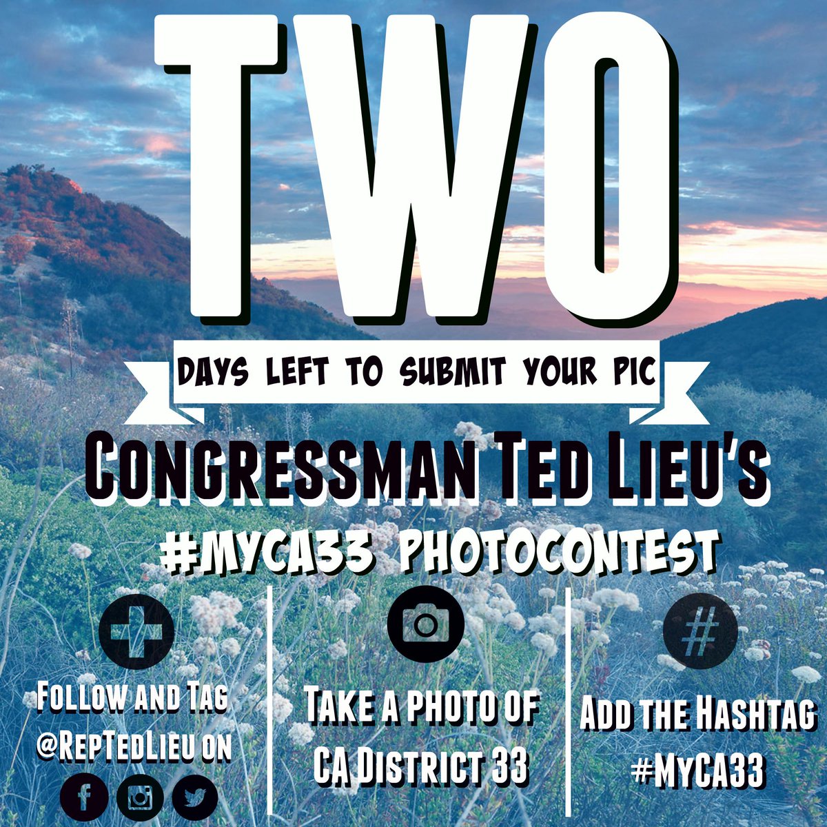 2 days left & I want to see your pics! Enter #MyCA33 photo contest! Details and rules here: http://go.usa.gov/3fBu9 pic.twitter.com/waBhLVZB3c