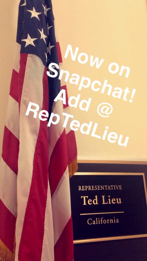 Are u on @Snapchat? Add me @ RepTedLieu 2 check out my first snap! Fun Fact - #Snapchat HQ is in #CA33 in Venice, CA!pic.twitter.com/gaaYWZmhOc