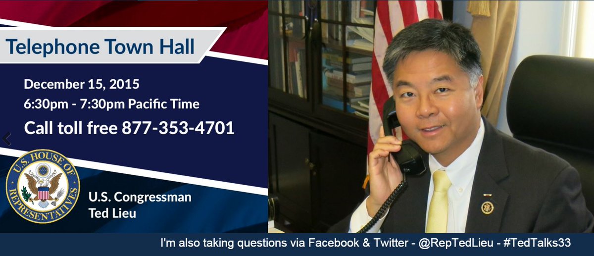 Don't forget 2 dial in 2day! I'll be hosting my 1st teletown hall! Call 877-353-4701 from 6:30-7:30PM PT #TedTalks33pic.twitter.com/wWvLp4PJS8