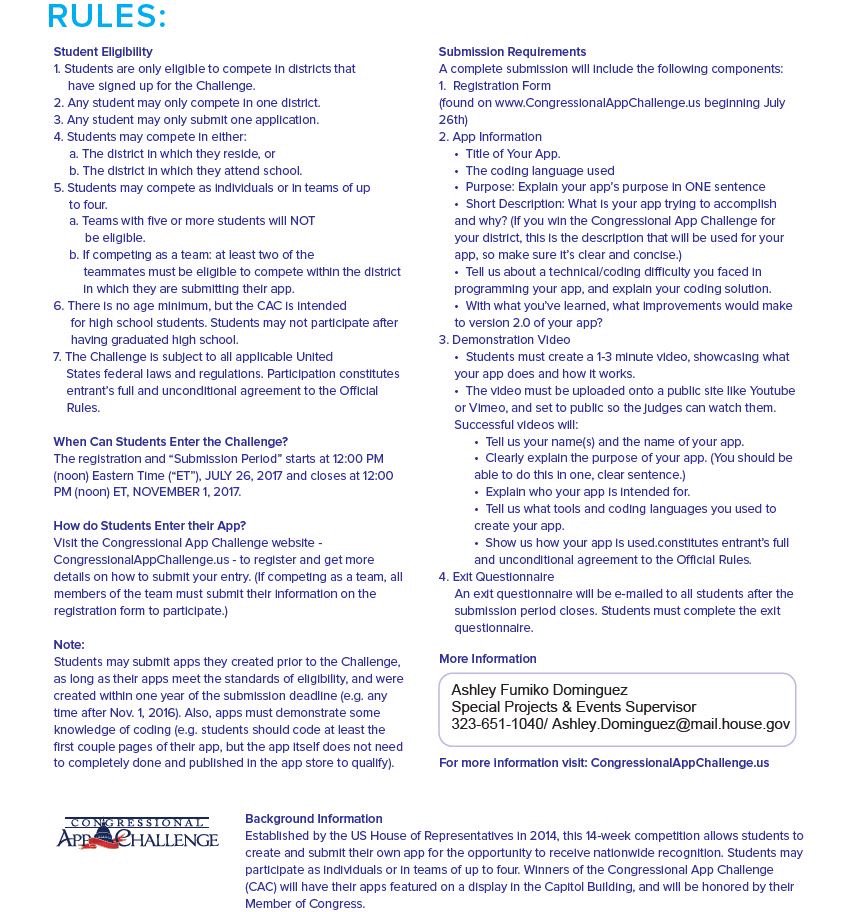 REMINDER! #CA33 students can now sign-up for the Congressional App Challenge! More info here: http://bit.ly/2vJWEWR  #HouseOfCode #CAC17pic.twitter.com/Dc5T8kEKjN